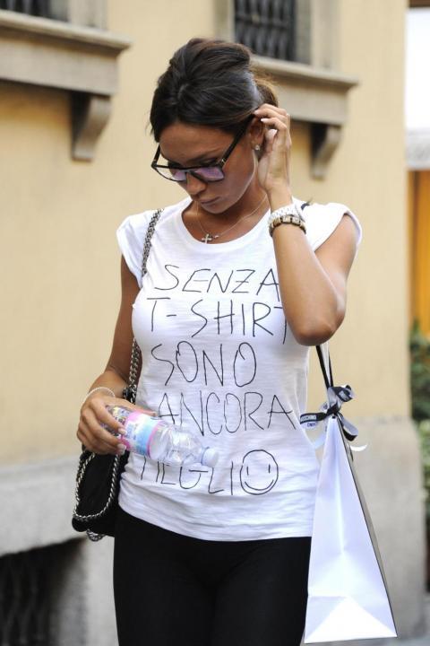 Ieri è stata fotografata in Montenapoleone a Milano con una T.shirt che poco si addice al suo ruolo in politica. "Senza T.shirt sono anche meglio", che altro aggiungere...si commenta da sola!
